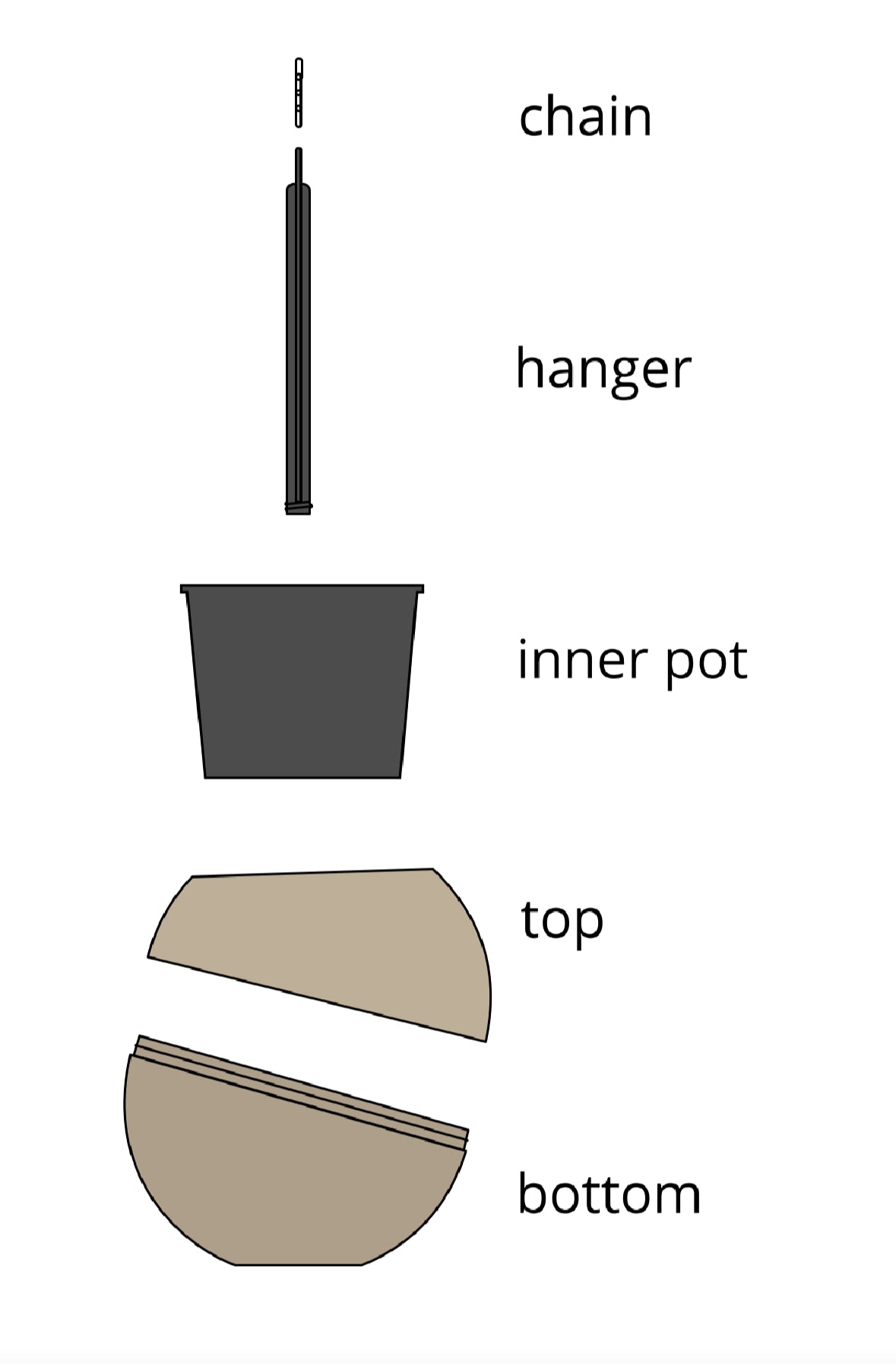 Système de suspension, chaîne et pot intérieur inclus.